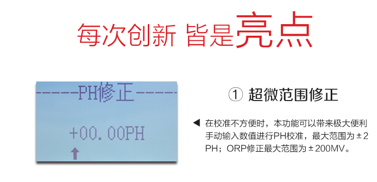 1、主要特點 ? 板卡模塊化設(shè)計,組裝配置更加方便。 ? 采用2.4寸12864 點陣屏 ? 采用隔離變送輸出,干擾度更小 ? 采用隔離RS485通訊 ? 可進行PH/ORP的測量、溫度測量、上下限控制、變送輸出、RS485通訊 ? 可組態(tài)溫度手動、自動補償功能 ? 可設(shè)置高、低報警功能,及遲滯量 ? 可設(shè)置蜂鳴器、燈光報警開關(guān)功能 ? 增加萬能密碼功能 ? 工業(yè)控制式看門狗,確保儀表不會死機